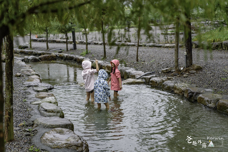 營區最大的特色就是溪流式戲水池,水道彎曲穿過營地,小朋友在一旁就可開心戲水,漂亮的景色帶點異國風情。另外還有輪胎鞦韆、戲沙坑給小朋友玩。