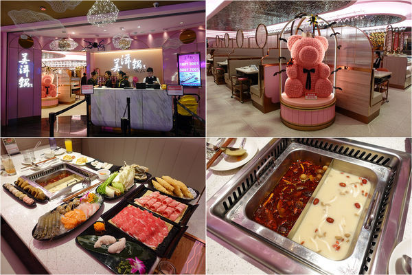 270坪的粉色空間既夢幻又時尚,入口處有花牆、化妝檯拍照布景區,入內後一隻用上千朵玫瑰打造的粉色小熊迎接大家。兒童遊戲區是獨立的空間,裡面有闖關組與旋轉溜滑梯,戶外還有休息區,吃火鍋最擔心小朋友坐不住,當小朋友不耐久坐時,有可以放風的地方最棒了。