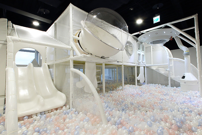 溜滑梯球池是樂園必備的遊樂設施,奧斯丁邀請專業設計師,打造唯美系空艙球池。純白的闖關遊具,粉色珍珠滲光漸變球,不只好玩,更好拍。