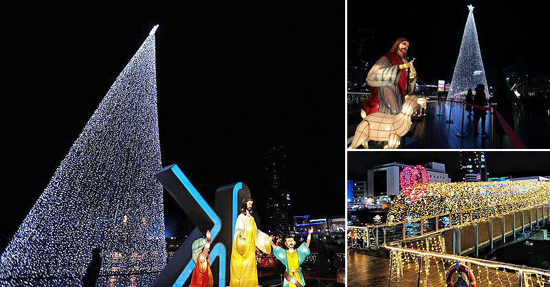 基隆的聖誕夜也非常熱鬧,閃閃燈飾在海港邊散發耀眼光芒,17米高的LED環保聖誕樹照亮周遭,連海面也熠熠生輝。
