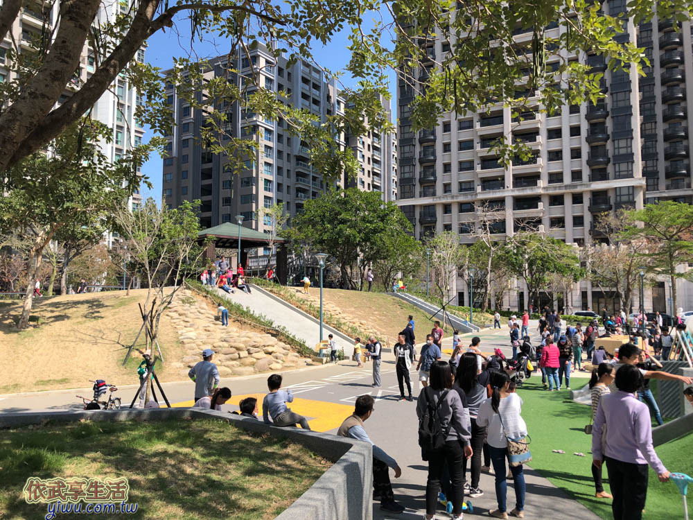 公園中間則是大片的草皮空間,也可以帶上泡泡水或球類玩具來玩哦。