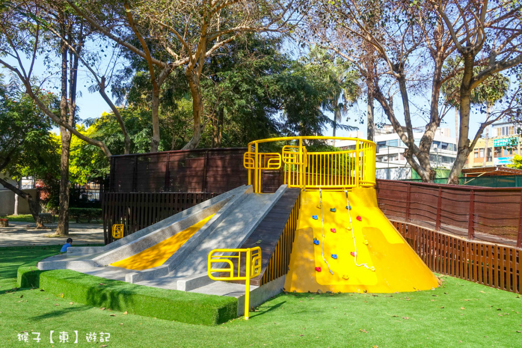 兒童遊戲場於2020年1月重新整修後開放,移除舊有的罐頭溜滑梯,設置磨石子溜滑梯,有寬、窄2滑道,並結合攀岩牆、繩網攀爬等挑戰設施,給小朋友多元的遊樂體驗。