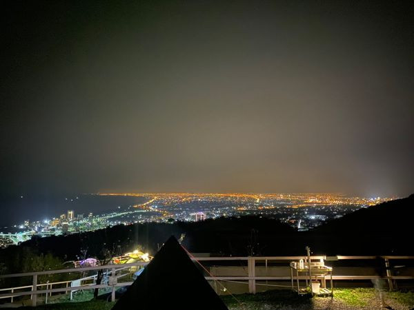 營區座落在頭城半山腰上,可以清楚看見宜蘭市景與漂亮的海岸線,彎曲的海岸線遠看好像在微笑,故取名為微笑彎,而營地最吸引大家的就是這個美景了。