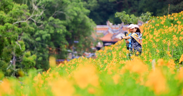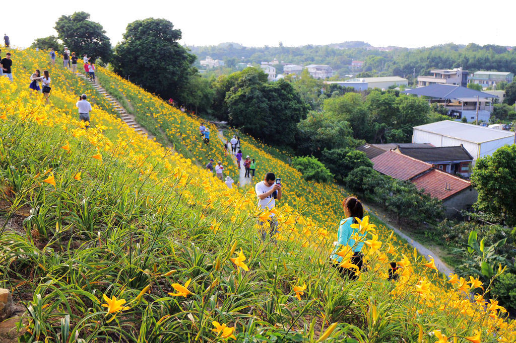 中部的爸媽想帶小朋友就近賞金針花,就來虎山巖吧,不用長途跋涉,又有大型停車場。金針花就種在虎山巖旁的山坡步道上,滿開時整片山坡黃澄澄的,非常亮眼,不論是在山坡下或走上去往下拍,都很漂亮。
