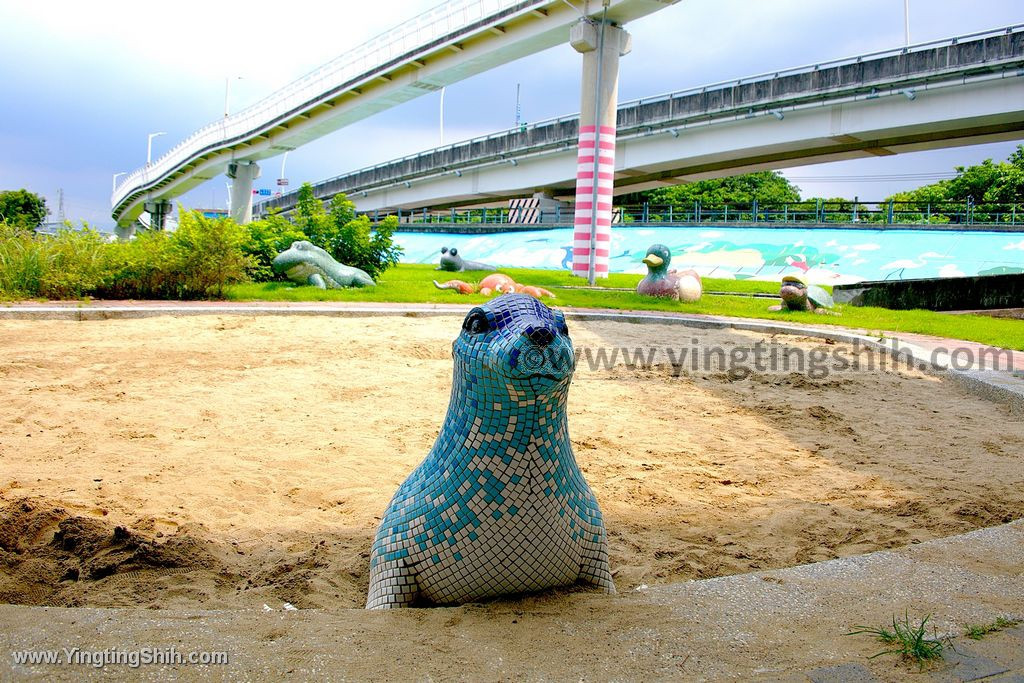 兒童遊戲場有寬窄滑面磨石子溜滑梯、繩索攀爬、攀岩牆、圓盤/雙人/一般鞦韆、體能攀爬架等。戲沙坑在另一側,這裡就無遮蔽,沙坑上有一隻可愛的海豹,一旁草地上則有鴨鴨、烏龜、章魚、彈塗魚、螃蟹等可愛動物造景。