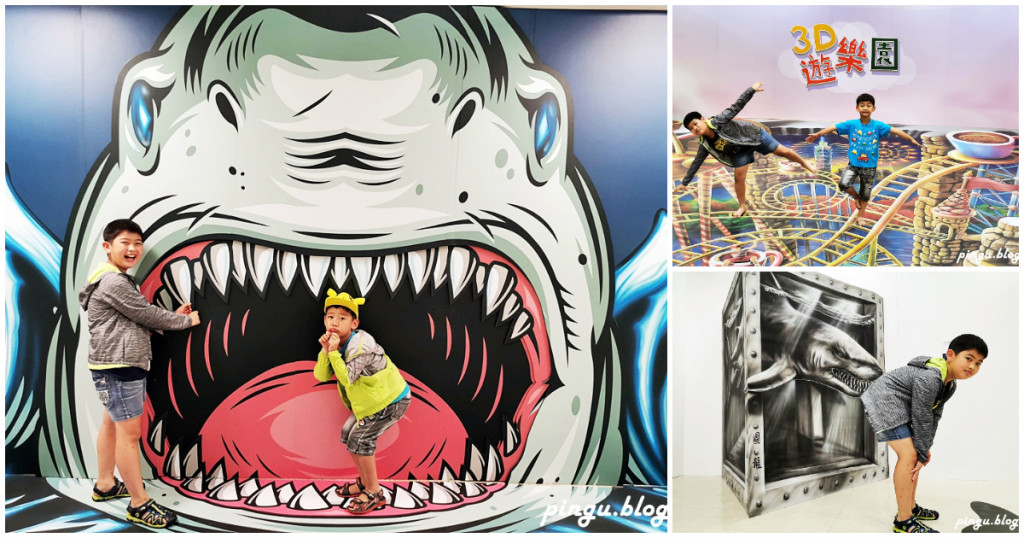 每一個3D作品前有標示最佳拍照位置,讓大家拍出精彩的互動照片,另外還有小積木池與拔蔥遊戲可以玩。