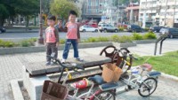 這裡有大片的草坪,草坪上還有舊型的鐵軌交織著,很適合帶著小朋友在這裡散步,而草坪旁的自行車道,可以讓愛騎腳踏車的家庭來這裡輕鬆的騎乘。