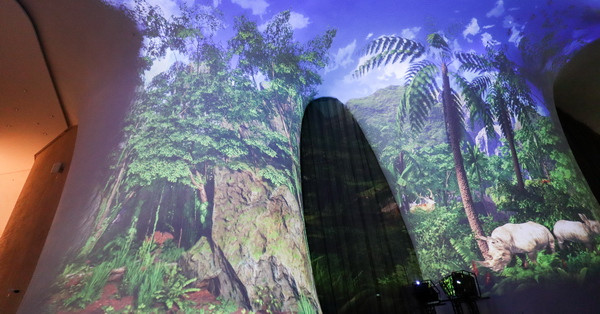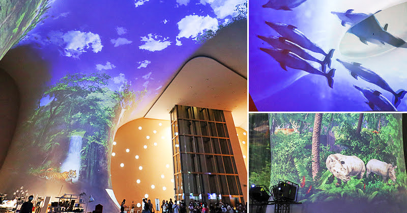 光影秀免費開放參觀,分為1F大廳曲牆-海底世界、2F大劇院前廳-叢林與海洋&極光與星空二區。在曲牆上進行投影,視覺效果更是震撼,大小朋友可以坐著或躺著觀看,搭配柔和的音樂,感受全新的視覺體驗。