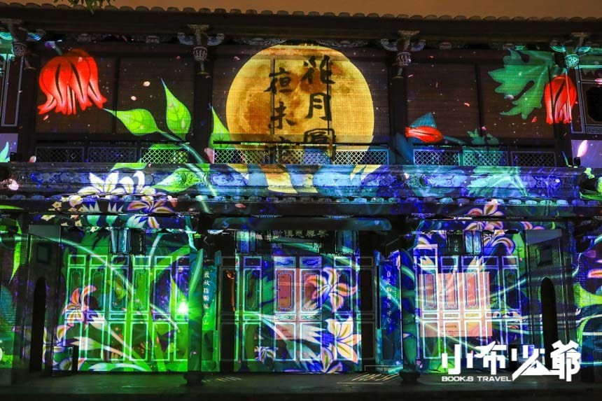 新版光雕內容以花好月圓為主題,璀璨的光影與漂亮的圖案引人入勝,在古色古香的庭園裡欣賞更有一番風情。且除了光雕秀外,活動期間特定日期加碼請來劇場配合光雕現場演出,表演內容改編古老傳說,並結合紅娘、嫦娥奔月與月下老人等故事,小朋友很少接觸古裝表演,是很難得的體驗呢。