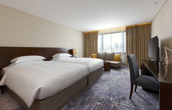 五星級-台北喜來登大飯店座落在台北市中心,緊鄰善導寺捷運站,要去台北火車站商圈、西門町商圈或東區都很便利。飯店由寒舍餐旅營運,提供一貫的優質服務與精緻的住房品質,加上多間中、西、日、泰式異國美食餐廳,給旅客最豐富精采的食宿享受。
