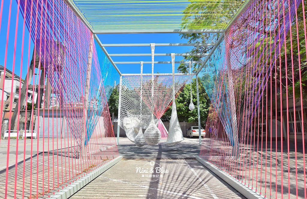 園區僅假日開放,進入園內會看到一座大型的編織裝置藝術,彩色織網在陽光下很漂亮,下方還有球狀編織鞦韆、編織吊椅等設施,小朋友很愛在上面擺盪遊玩。