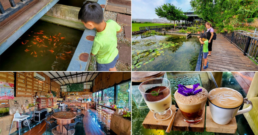 魚罐頭咖啡館位在嘉義民雄,座落在鄉間小路邊,四周是綠油油的田地,餐廳最特別的是建物就蓋在魚塭上,小朋友坐在椅子上就可以看著魚兒在腳下悠游,店家也會提供飼料讓小朋友餵魚趣。
