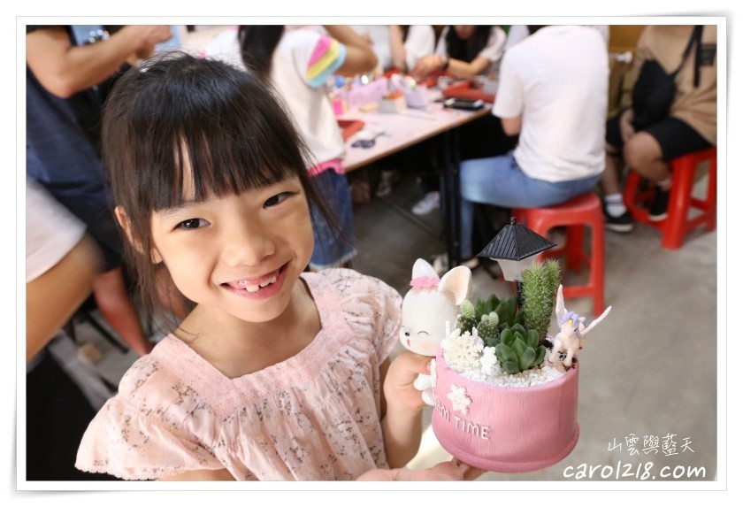 若要參加盆栽DIY,假日人潮多建議先預約,先選擇盆栽大小,接著選擇要栽種的多肉植物、舖石顏色,就可以進行移盆。現場都有工作人員進行講解教學,最後還可挑選小飾品進行裝飾,就完成獨一無二的多肉盆栽了。