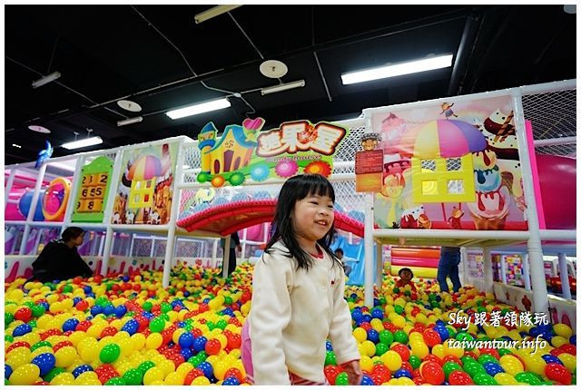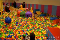 免費室內遊戲區(球池):位於1樓臺北樹蛙表演場後方,內含可攀爬之遊戲設施及滑梯,並備有數萬顆塑膠球、讓小朋友可盡情遊戲。進入球池區之孩童及家長皆須著襪,每位家(師)長限帶2名以下兒童,始得進入遊玩。圖片來源:兒童新樂園