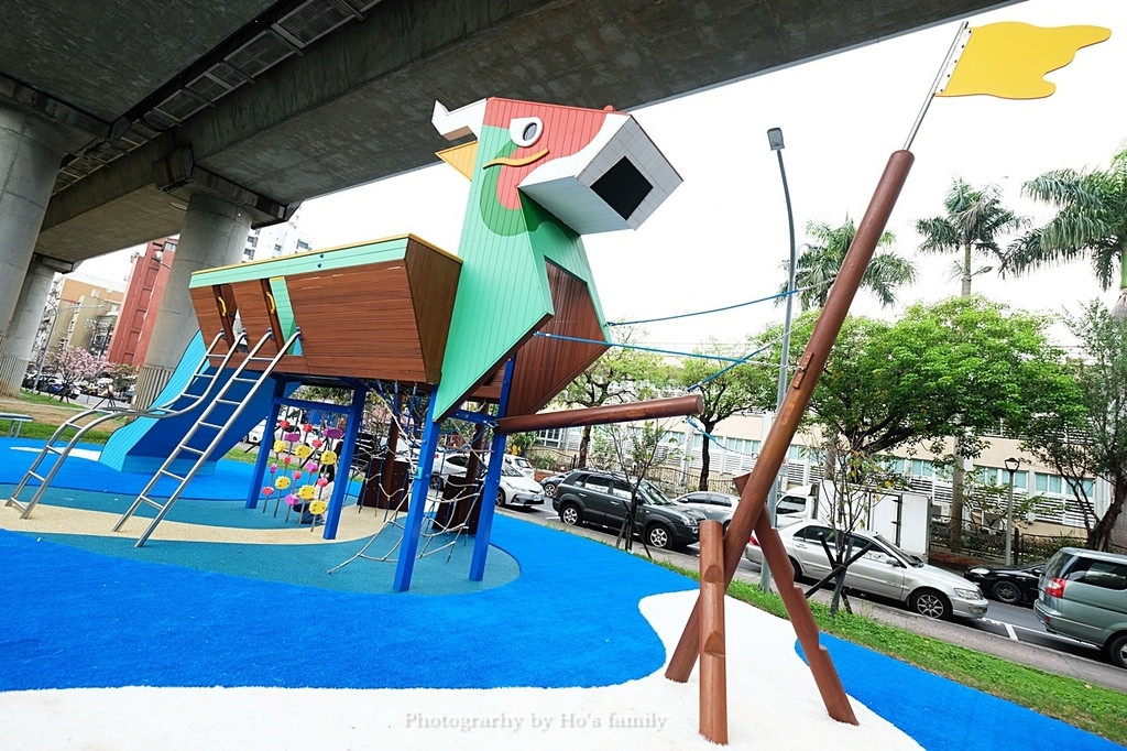 遊戲場就設置在捷運高架橋下方,不會直接曬到太陽,雨天也能玩。這裡離劍潭站約8分鐘路程,周邊有士林夜市、前港公園特色遊戲場等景點。