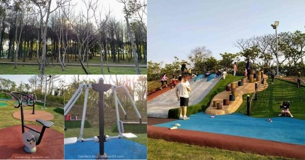 大草皮很適合踢球或是玩泡泡水,天幕平台可野餐或是讓小朋友練騎滑步車,是遛小孩的好去處。另外這裡的體健設施有飛輪以及練手臂的健身器材,爸媽也可順便運動練身體。