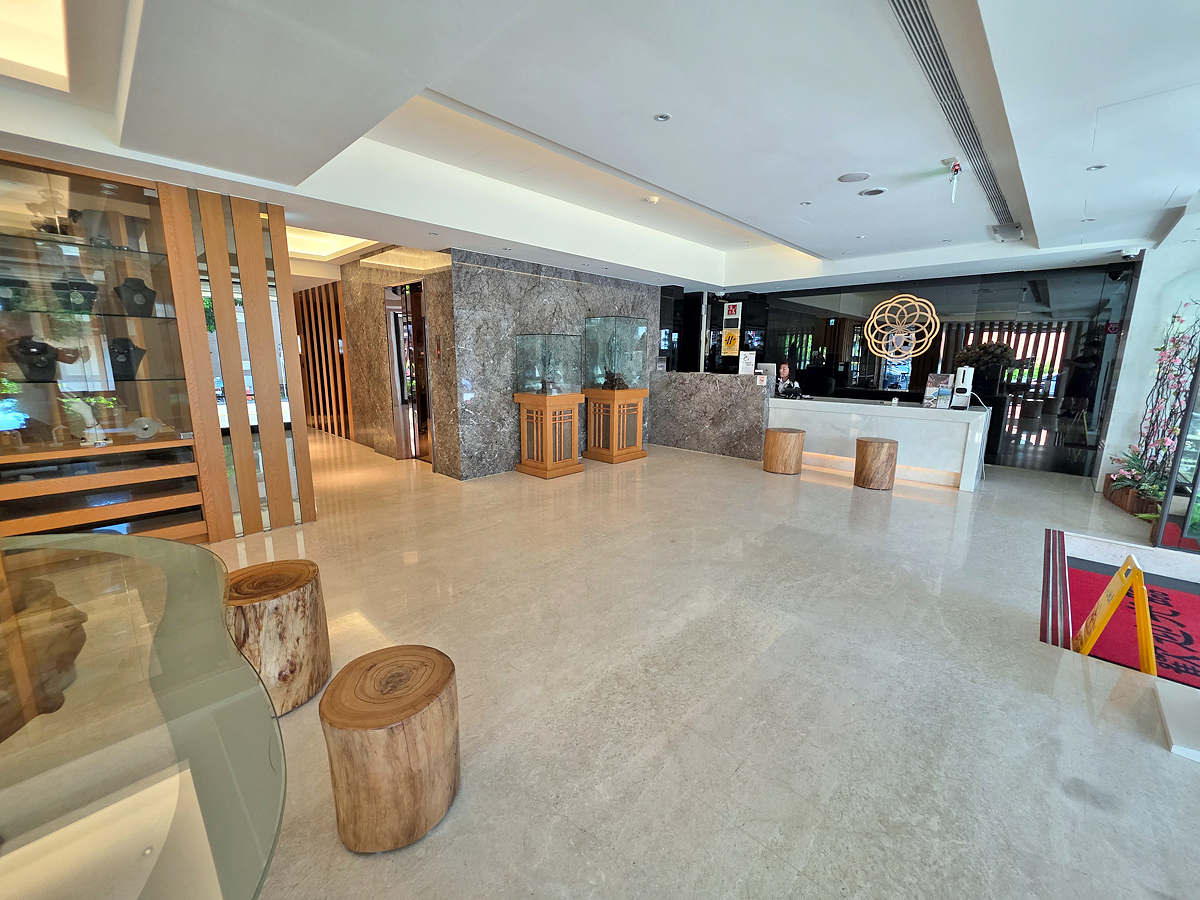 飯店地點位於礁溪最繁華地段,飯店一樓有販售溫泉煮蛋為其中之一的特色,整個飯店的風格採日式現代風,原木色的裝飾融入整個飯店風格,讓人感覺很舒適。