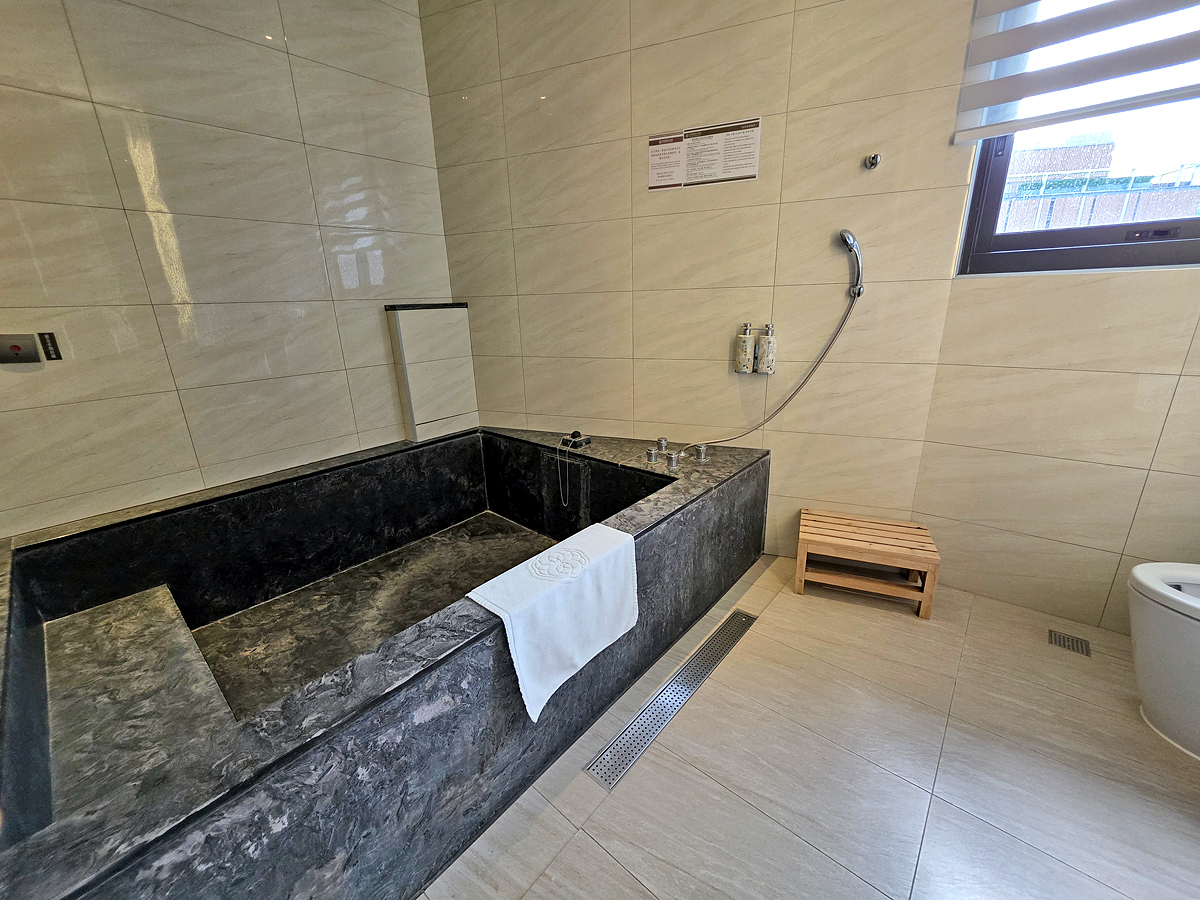 不論是雙人房或四人房,葛瑪蘭風呂會館的浴室都會配置「高級月光石泡湯浴池」,入住在自己的房間內就可以享受泡溫泉的樂趣。