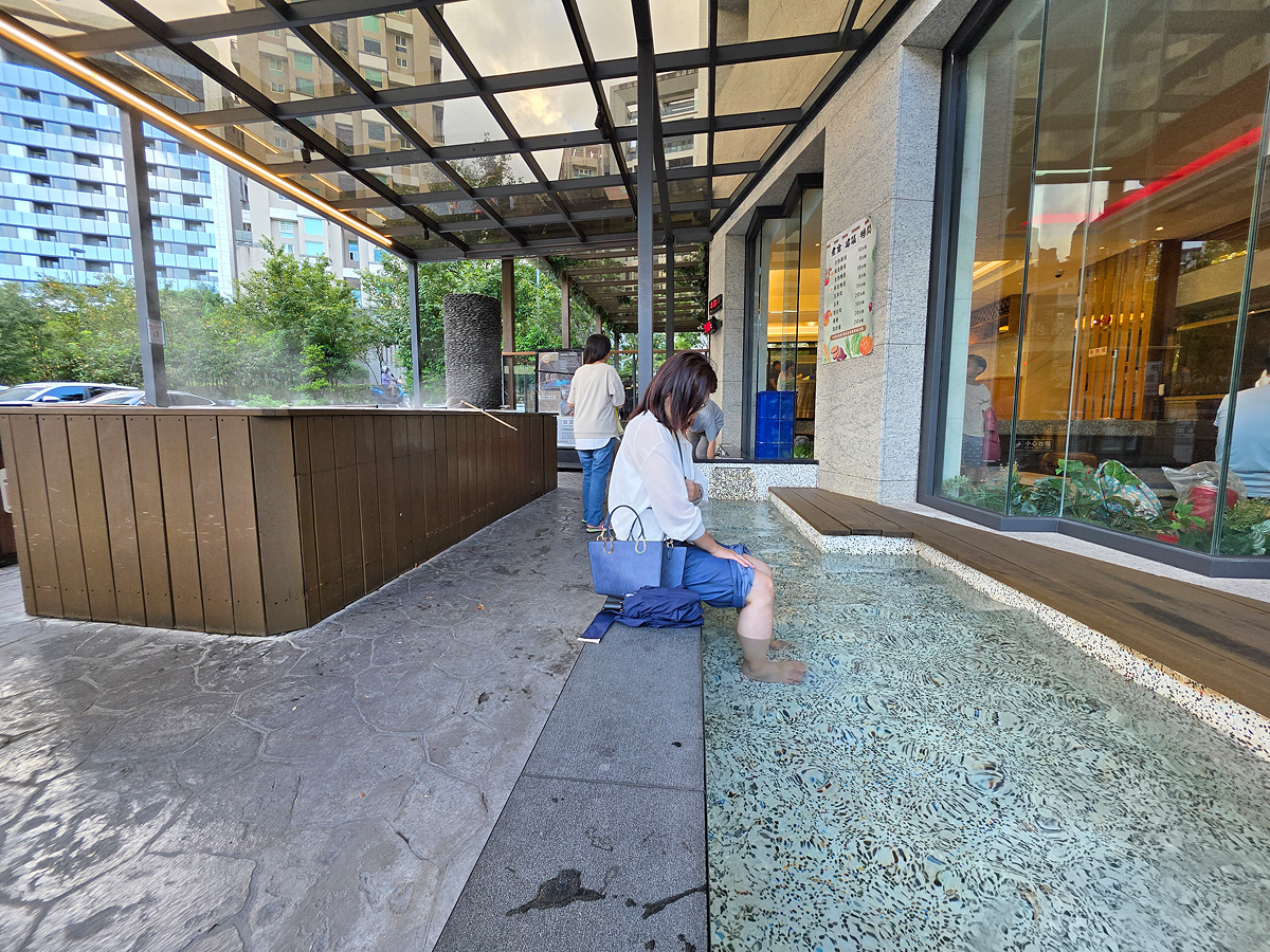 在煮溫泉蛋的時間,葛瑪蘭風呂會館還貼心的在旁邊準備了足浴空間,食材放進溫泉煮後,就可以去旁邊足浴讓腳也能泡溫泉,讓遊玩一天的雙腿可以放鬆。