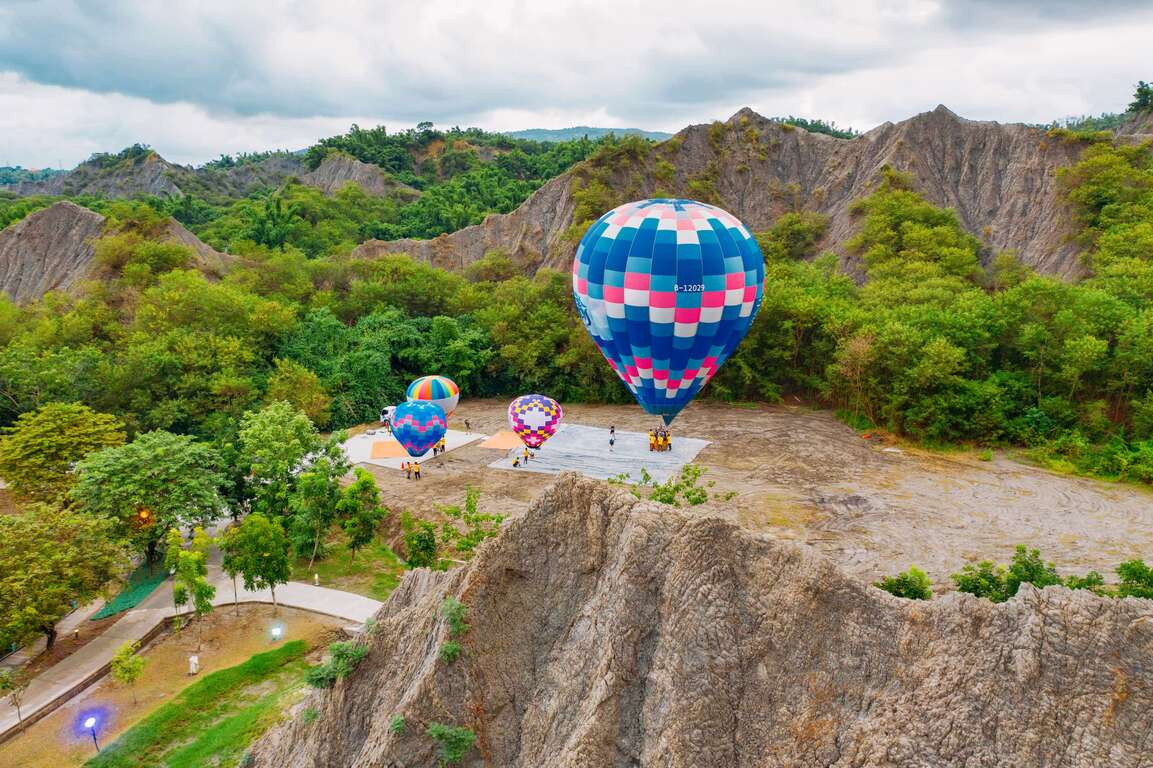 愛河的熱氣球升空場地在西畔228和平公園內,緊鄰愛河畔,熱氣球的背景是城市與綠地,河面上也倒映著熱氣球,漂亮極了。月世界則是獨特的惡地景觀,好像來到土耳其的熱氣球之都-卡帕多奇亞,充滿國外風情。