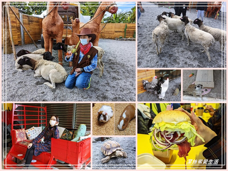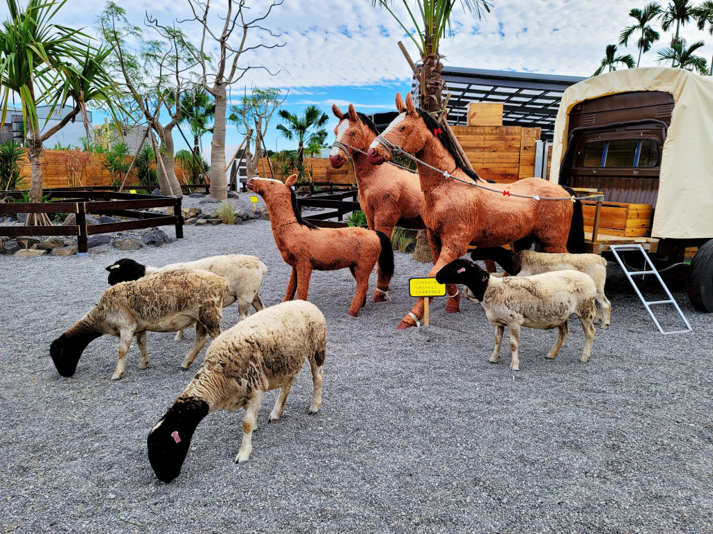 裡面還有設計西部馬車屋、白色饅頭屋等拍照區,入園門票含飼料,小朋友可以開心的與牠們互動餵食。用餐區也是在半室內空間,這裡的餐點有漢堡、炸物小點、爆米花、冰淇淋與飲品。