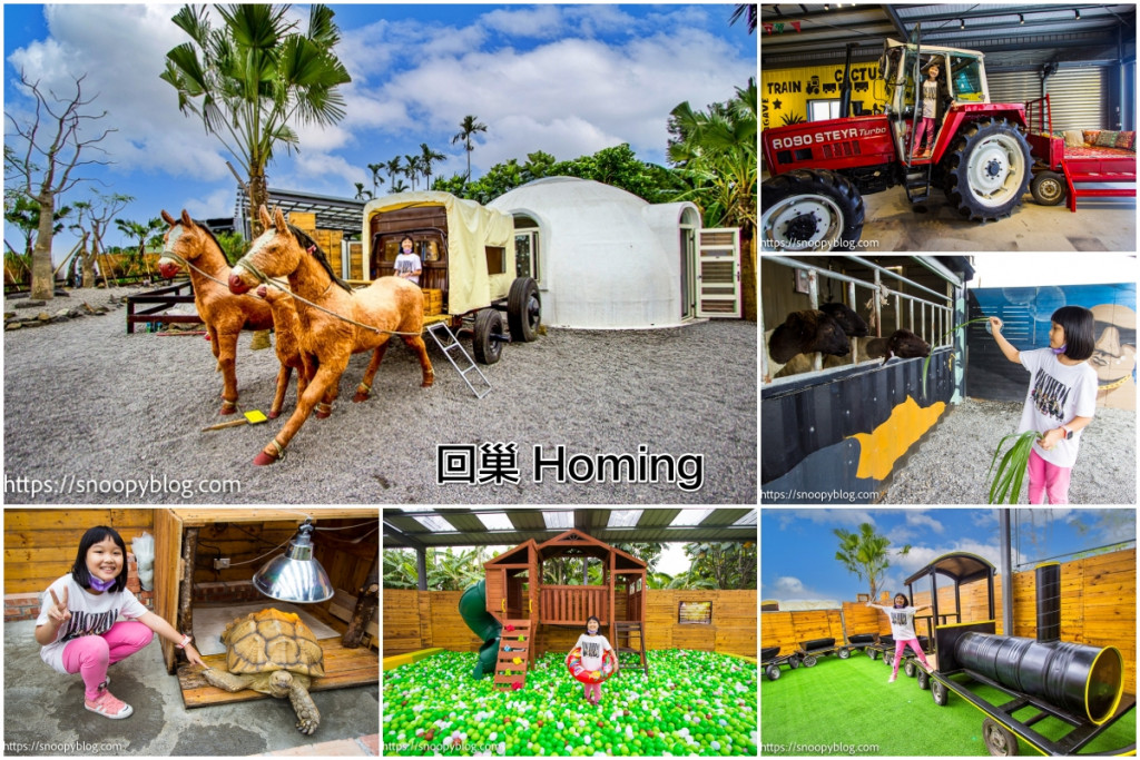 回巢位在宜蘭礁溪大塭路上,離頭城交流道約8分鐘車程,2021/11/12開始營運,裡面設置好拍照的主題區,可以餵小動物;入園門票含三種牧草,以及小紀念品,裡面也有餐廳供應餐點。