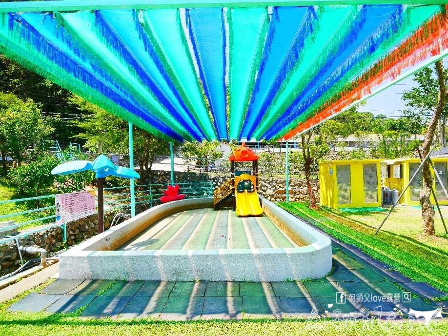 兒童遊戲區有溜滑梯遊戲組、盪鞦韆、戲沙坑以及溜滑梯戲水池,草皮區適合小朋友跑跳玩耍,且戲水池與沙坑上方還有遮陽簾,夏天來玩不怕太曬。這裡離市區不會太遠,方便補給。營本部也有販售飲品、泡麵、瓦斯罐等日常用品,提供冷凍櫃、冰箱、飲水機、吹風機、脫水機等設備。
