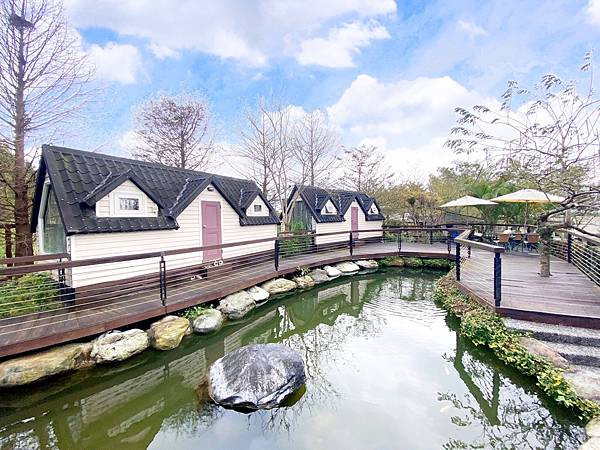 園區戶外有景觀魚池,可以讓小朋友餵魚趣,也有步道可以走走散步。這裡也有公共餐廳空間,可以購買外食在此享用或是回小木屋內,因為是在山區,建議先採買好需要的物品上來,就不用再跑一趟了。