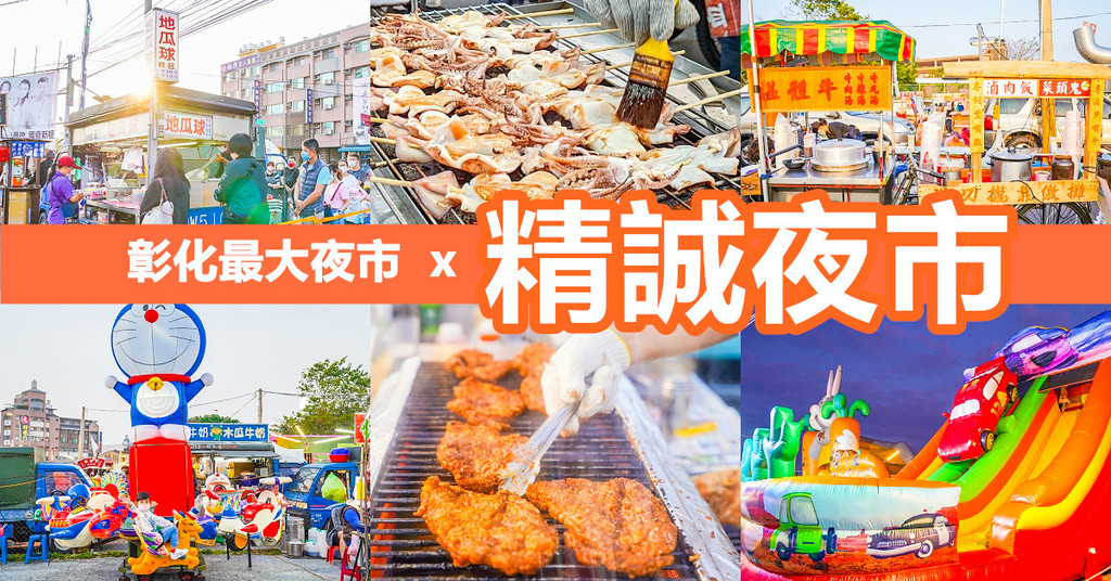 精誠夜市是彰化市大型夜市,近彰化交流道,附設大型停車場,裡面有多樣美食小吃、衣服飾品,也有給小朋友玩的遊樂設施,且價位都很平實,假日就來吃吃喝喝,還能讓小朋友放電遊玩。