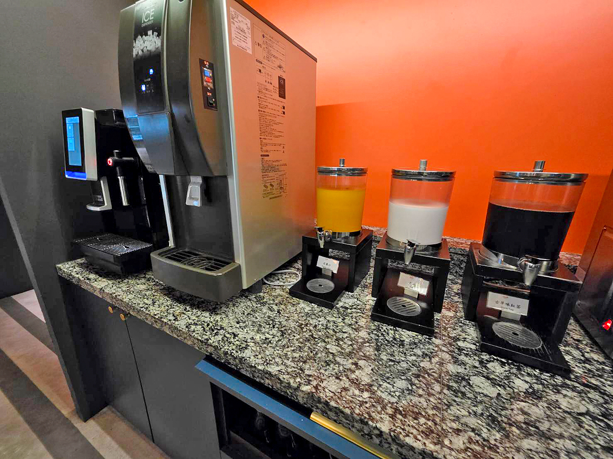 B2的休憩空間會有24小時開放供應的咖啡茶飲自助使用,下午3點後還會放上冰飲給來訪的賓客們。