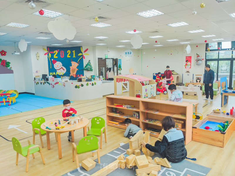親子館就在一樓,免去爬樓梯或等電梯的時間。館內專為0-6歲學齡前兒童打造,分為體能區、寶寶區、益智區、角色扮演區、主題區等主題,空間設計小巧溫馨,採用大量原木安全玩具,讓小朋友玩的開心,爸媽也安心。