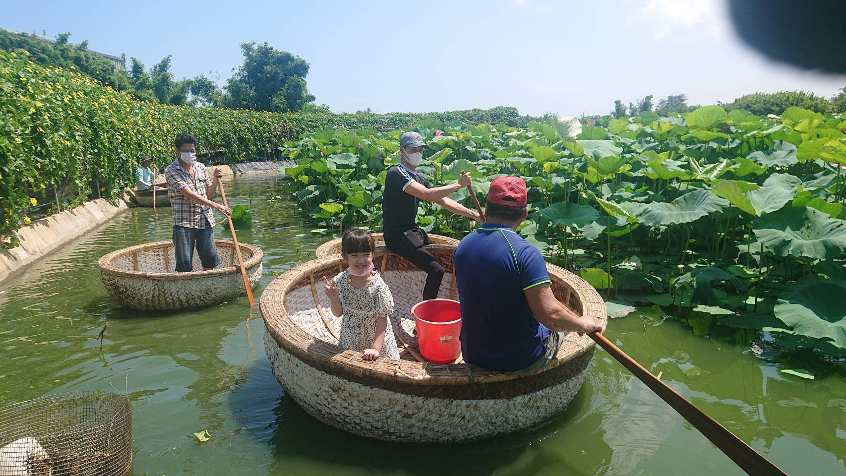 竹編的大碗公船外觀非常特別,圓形的碗公船中間設有座椅,可乘坐2位成人,拿著船槳邊划邊欣賞蓮花風情,要往前進需要一點小技巧,小朋友覺得新奇又有趣,繞行蓮池一圈還挺有成就感的。