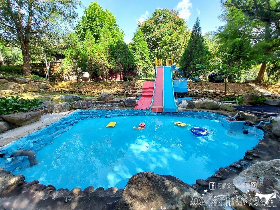 這裡也有給小朋友玩的遊樂設施,夏天清涼的溜滑梯戲水池,引入山泉水,清澈涼爽,小朋友泡在裡面都捨不得離開了。營地公共設備有吹風機、冷藏冰箱、冷凍庫、飲水機與洗衣機供露友使用。
