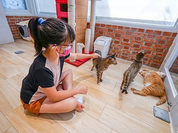 貓園在室內用餐區旁,利用大片玻璃打造成獨立空間,可以清楚看到貓咪的動態,想跟貓咪互動需在訂位時與店家登記,或現場登記,就能擁有15分鐘的獨享時間,裡面共有5隻可愛的貓咪,都很溫馴親人。另外貓園旁還養有龍貓(絨鼠),圓滾滾的樣子,可愛討喜。