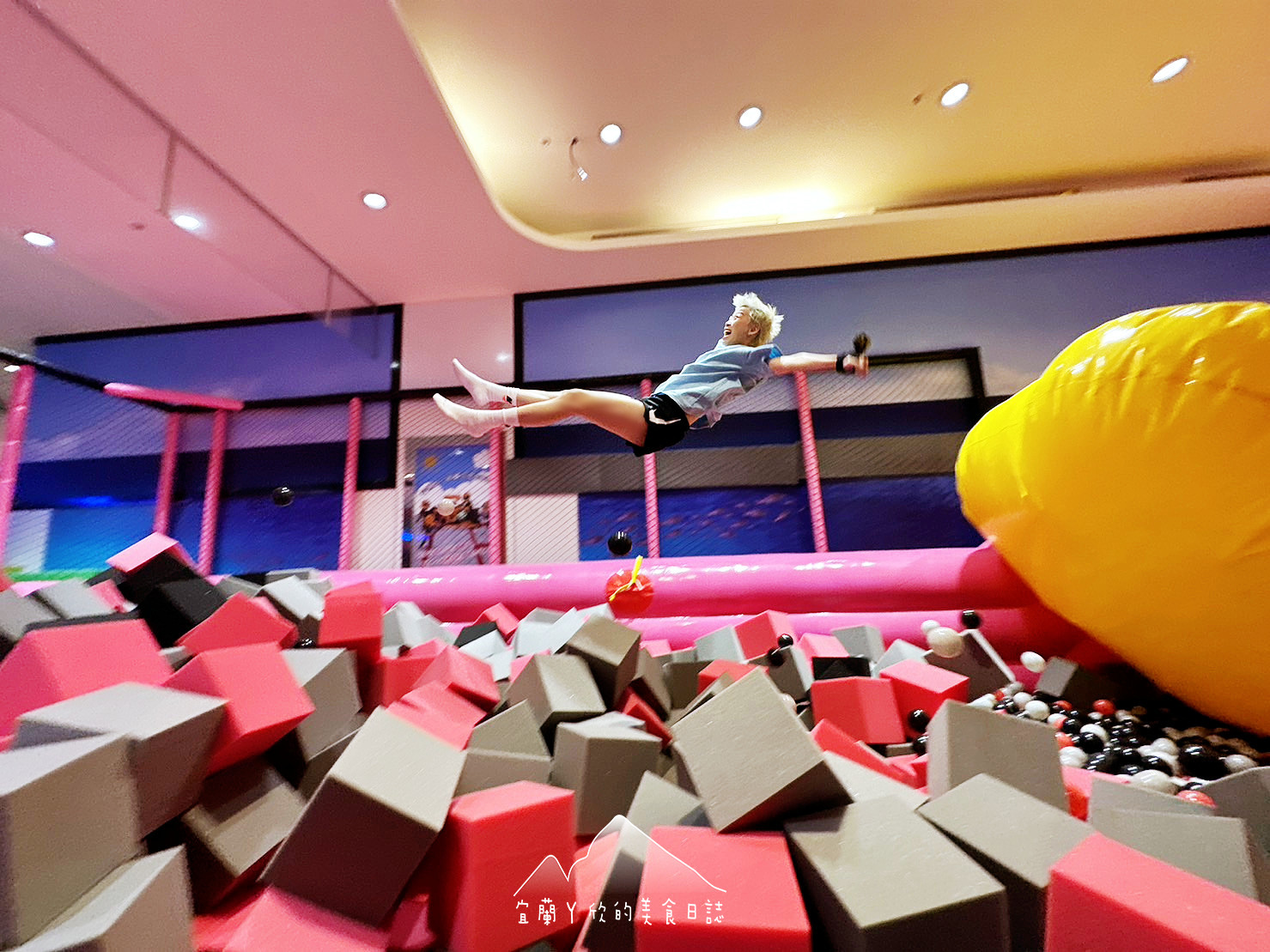 入館需年滿12歲或身高超過150公分以上大童與成人,遊樂設施分為動態遊樂區與電子遊藝區2大區,動態遊樂設施都具有一定的挑戰性與刺激度,有75度斜坡的魔鬼滑梯、4公尺高蜘蛛塔、彈跳飛人、泡泡走球、波優球、蹦床區、滑索、極限衝浪以及飛越滑梯,正適合愛挑戰的大童遊玩。