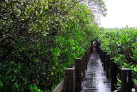 生態保護區的紅樹林非常茂密,走在觀賞步道間,紅樹林都蓋過人的高度,形成走路的綠色隧道,故又有龍貓隧道之稱,帶點神秘的美感;而紅樹林步的泥地內,不時可以看到許多招潮蟹,也非常吸引小朋友注意力。