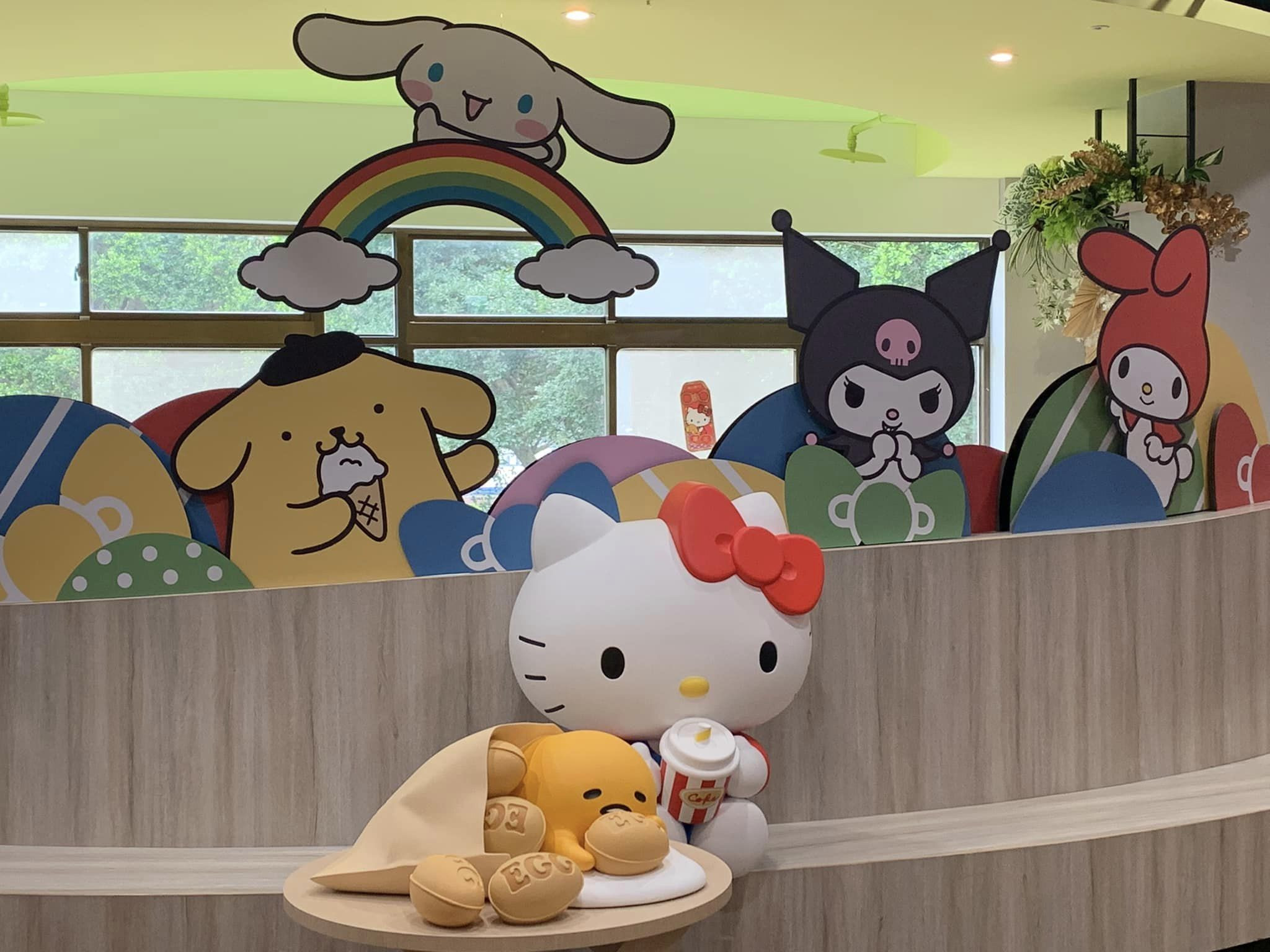 Hello Kitty、布丁狗、美樂蒂、大耳兔、酷洛米在上方迎接大小朋友。