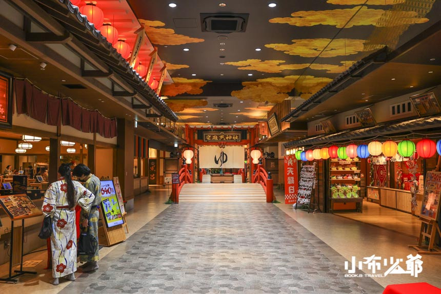空庭溫泉以早期安土桃山時代為主題,將古日本街道場景重現,古色古香超好拍的。入內每個人都需要換上浴衣,大人小孩尺寸皆有,可選擇的花色也不少,換好浴衣後在裡面光拍照就可以拍上一陣子。來這裡重點是泡溫泉,園區提供9種不同主題的溫泉,男女分開,若不好意思全裸泡湯,可加價選擇獨立湯屋
