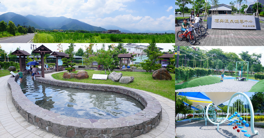 遊客中心另有提供免費的自行車租借,可以騎乘至周邊景點,享受南投輕旅行。一旁是已完工等待9月啟用的福興溫泉親水公園,裡面設有溫泉泡腳池,日式造景很好拍,還有特色兒童遊場可放電,日後這裡熱鬧起來,將會更好玩。