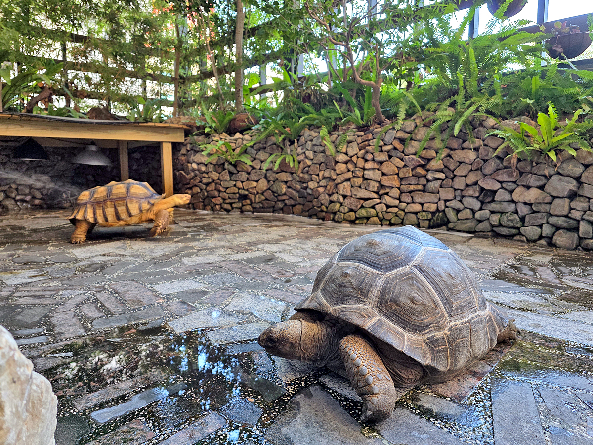 在戶外享受小魚咬腳的休憩區內,還有好幾隻可愛的蘇卡達象龜,記得帶小朋友來看看。