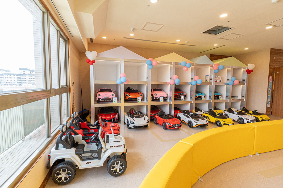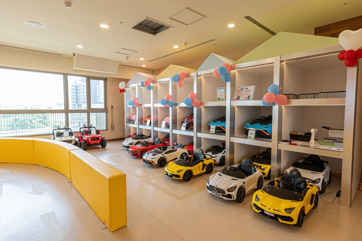 兒童超跑車道順著遊戲場外圍駕駛,有帥氣的吉普車、賓士超跑等各種車型,滿足不同小朋友的喜好。