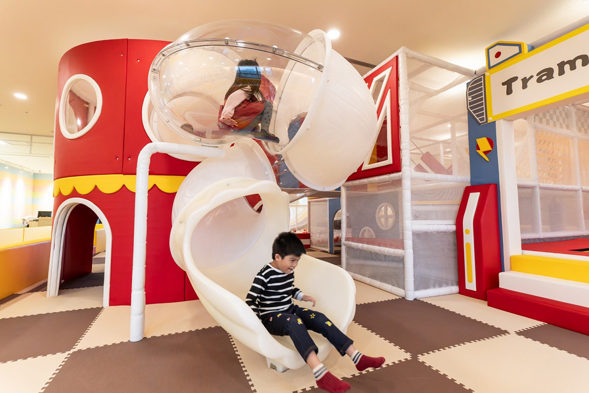 另一邊有旋轉滑梯跟彈跳床專屬空間,也很適合小朋友來消耗體力。