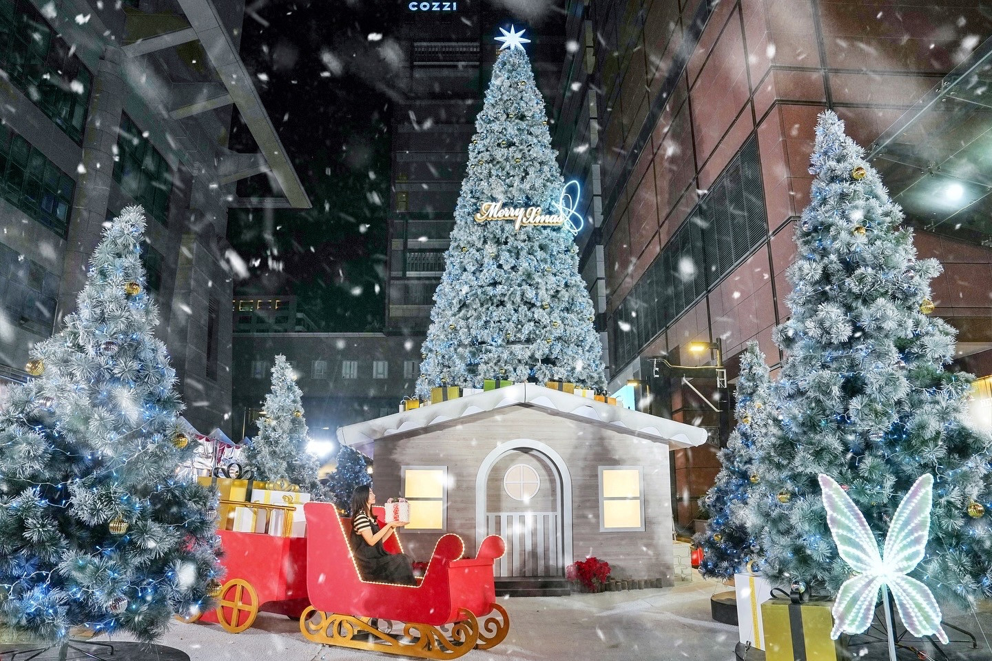 每年都有漂亮主題聖誕裝置的西門店,今年以「夢幻雪國 精靈之森」為主題,12公尺高巨大雪白聖誕樹充滿冬日氛圍;聖誕樹下方有小木屋、紅色耶誕雪橇,好像來到北歐一樣,若遇到整點飄雪,更有FU!