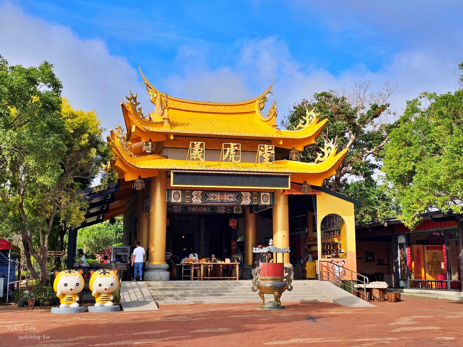 傳說虎爺可以招財、驅魔,也是小朋友的守護神,可以帶小朋友來拜拜保平安。義虎堂是間金黃色廟宇,非常氣派;前方有可愛的虎爺公仔,後方有虎爺彩繪牆、大型彩色立蛋,以及不同表情姿勢的虎爺公仔,讓嚴肅的廟宇多了童趣氛圍;再過去還有魚池,可購買魚飼料讓小朋友餵魚趣;