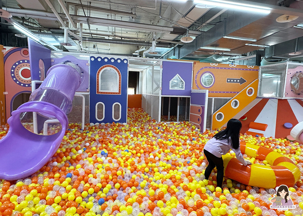 樂園以「火山大冒險」為主題,整體色系以紅色為主,熱情活潑;主題A區-火山樂園有百萬大球池、香蕉船、溜滑梯、投影互動遊戲、高射砲台、闖關探險、橡皮艇等遊樂設施;B區-蹦床跳跳樂最能耗去小朋友體力了,多座蹦床跳不停,還有海綿池與投影互動遊戲。