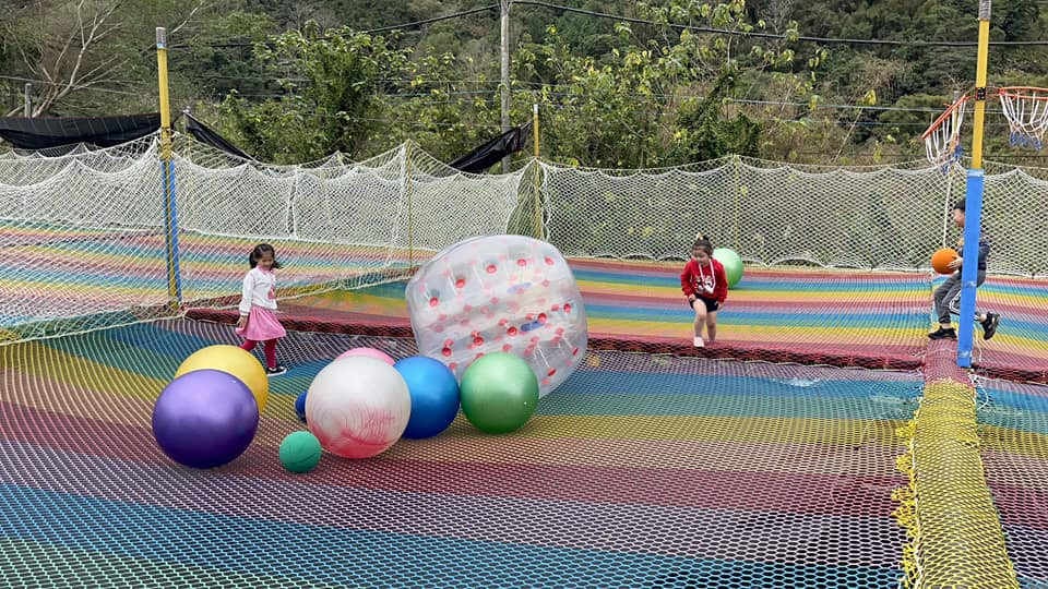 內灣水晶對戰場鄰近內灣老街邊,這裡有刺激好玩的水晶槍對戰活動,還有超好玩的彩虹空中彈跳網與各式無電動力遊樂設施,很適合一家大小來此放電遊玩。
