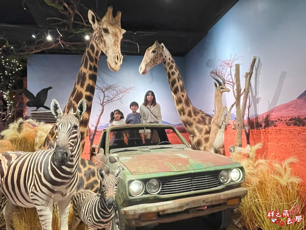 場內設計的很用心,可以站在車上跟長頸鹿合拍、坐在椅子上被動物們包圍,讓人拍不停。需注意的是,動物標本製作保存不易,入內參觀拍照即可,不要碰觸標本哦。
