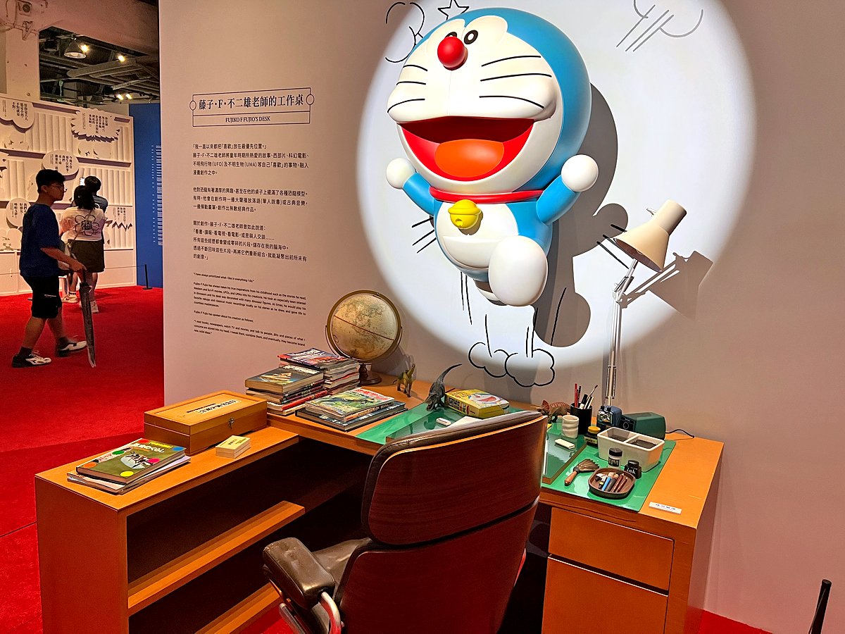 展場入口處旁12公尺高的巨型哆啦A夢充氣公仔超吸睛!一旁還有巨大鈴鐺與任意門+滿滿哆啦A夢打卡裝飾;主題展區有星光大道、復刻藤子・F・不二雄老師創作書桌、秘密道具室、巨型漫畫封面牆、近百種哆啦A夢立體公仔;放大版漫畫,各種表情與動作的哆啦A夢、經典場景,讓人如數家珍,哆啦A夢迷必訪。