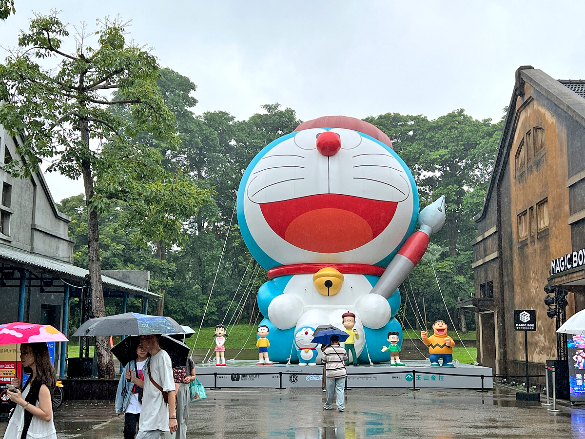 滿滿的哆啦A夢,各種表情與姿勢,可愛到不行!小朋友一定要站在中間一起拍照。