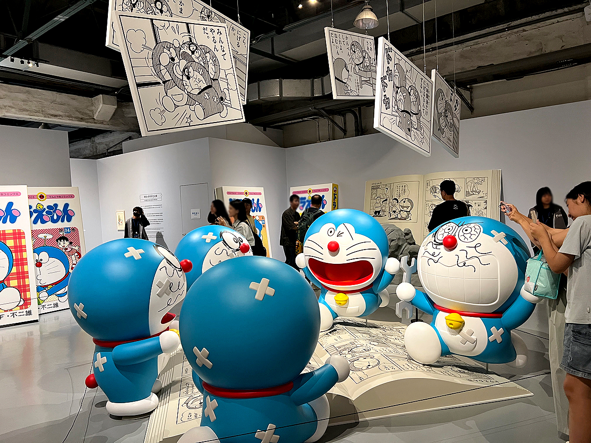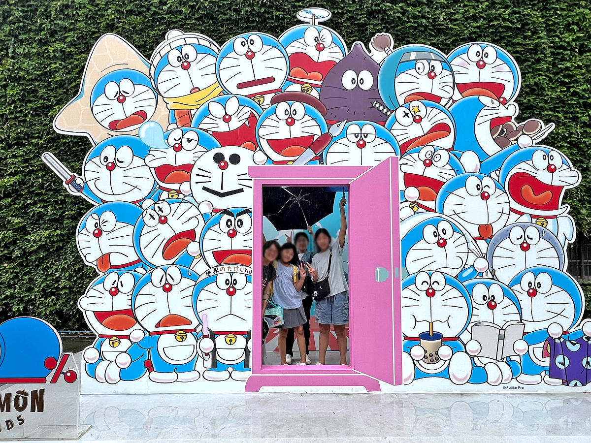 展場入口處旁12公尺高的巨型哆啦A夢充氣公仔超吸睛!一旁還有巨大鈴鐺與任意門+滿滿哆啦A夢打卡裝飾;主題展區有星光大道、復刻藤子・F・不二雄老師創作書桌、秘密道具室、巨型漫畫封面牆、近百種哆啦A夢立體公仔;放大版漫畫,各種表情與動作的哆啦A夢、經典場景,讓人如數家珍,哆啦A夢迷必訪。